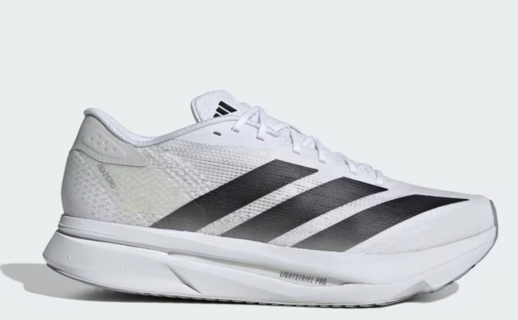 Experience the thrill of breaking personal records in a shoe that's as fast as you are. These adidas Adizero running shoes are equipped with responsive Lightstrike Pro, super-light cushioning that delivers energy return for next-level speed. The engineered mesh upper provides breathability and targeted support where you need it most to keep you flying to the finish. This product features at least 20% recycled materials. By reusing materials that have already been created, we help to reduce waste and our reliance on finite resources and reduce the footprint of the products we make.